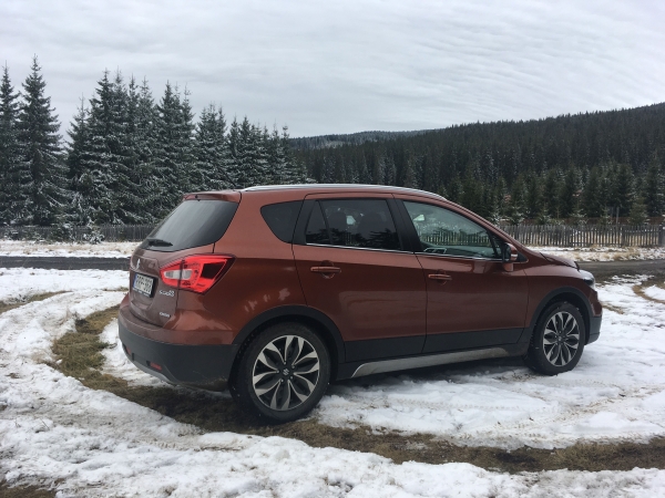 Kifejezetten kényelmes az S-Cross vezetése, minden körülmények között kellemesen, lágyan csillapít a Vitarától kölcsönvett futómű (abban feszesebb és pontosabb, de mindkettőben elöl MacPherson, hátul csatolt lengőkaros egységek dolgoznak), legyen szó városi makadámútról, nyomvályús autópályáról vagy a szőlőhegyre vezető sziklás útszakaszról. Sport módot kapcsolva a szokás szerint dinamikusabbá válik az autó, a hátsó tengelyre több tapadás jut, amitől élvezetesebb az elfordulás, a gázreakció is élénkebb, mint normál, azaz automatikus fokozatban. Az összkerékhajtás zárásához előbb snow, havas módba kell kapcsolnunk a forgótárcsát. Terepen is javult, a hasmagassága 16,5 centiről 18 centire nőtt. Váltója pontos, hatsebességes, a kormányzás közvetlen.