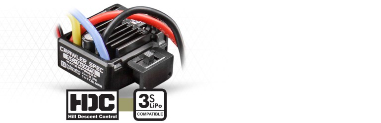 Ez az ESC alaposan konfigurálható, kifejezetten Crawler programokat biztosító ESC. Például van benne egy HDC program, vagyis Hill Descent Control, ami egy elektronikus drag fék, ami a lefele haladásnál segíti a precíz irányítást.