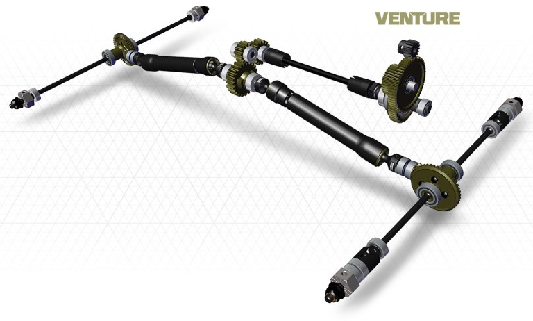 A Venture alváza sok lehetőséget ad számunkra, az ösvények és sziklák között egészen jól elboldogul majd a nagy terepszögeknek köszönhetően. Ezt segíti a teljes kialakítás, a lökhárítók ,gumik méretei, túlnyúlás, stb.