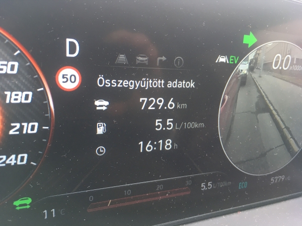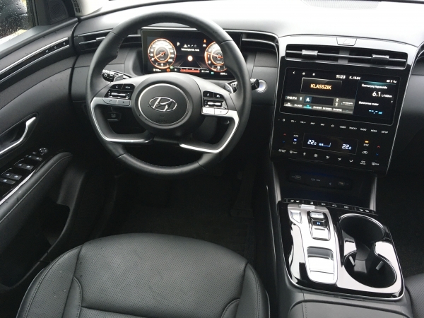 Halk az autó, a hangszigetelés kiváló. Már a 180 lovas motor sem piskóta, de a villanymotor erejével kiegészített 230 lovas összteljesítmény sokat sejtet. Csalóka ám a hibrid Tucson. Hiába a sok lóerő, az embernek nincs kedve agyonhajszolni. Sokkal inkább a kényelmes kocsikázás igénye keríti hatalmába a sofőrt. Nem a sietés, hanem az elegáns türelem a karaktere. Ha kell, megy a gép - ilyenkor az addig szótlan motor kiereszti egyáltalán nem szép hangját -, de sokkal üdítőbb az 5,5 literes átlagfogyasztásra összpontosítani. Közel 800 kilométeren át hajtottam, jártam vele autópályán (nem sokat, mintegy 100 kilométert) és országúton, városban és fővárosban, fűtöttem és klímáztam, a vége mégis ennyi lett: 5,5 liter 100 kilométerenként. Ha azt mondom, hogy a hármas Prius ugyanilyen használat mellett 5,4 litert fogyasztott 100 kilométerenként, akkor elmondtam mindent. Nem, Ildikó?