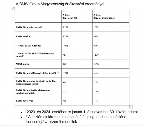 A debreceni gyár helyi felkészülésről azon a sajtótájékoztatón esett szó, amelyen BMW Group Magyarország vezetői értékelték az elmúlt év értékesítési eredményeit. Ezekből kitűnt, hogy tavaly ismét sikerült maguk mögé utasítani nagy riválisukat, a Mercedest, 2024-ben megint a BMW lett a hazai prémiumszegmens éllovasa. Összesen több mint 6200 járművet adtak el, ami 10 százalékos növekedésnek felel meg az előző évhez viszonyítva.
