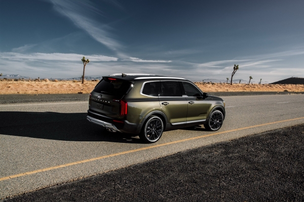 Igazi autópálya-söprő ábrázatot kapott a hatalmas Kia szabadidő-autó, buta kocka fényszórókkal, ám annál ízlésesebb hátsó lámpákkal. Odabent természetesen elképesztő terek várják az utasokat, lebegő tablettel és fabetétekkel. A Telluride is megkapja a dél-koreaiak legnagyobb, 10,25-colos érintőképernyőjét, ami okostelefon-tükörzésre is képes, valamint rendelhető lesz 10-hangszórós, 630-wattos Harman Kardon hifirendszerrel és konnektor nélkül telefontöltővel is. Nyolc főt szállítani nagy felelősség, ezért egy sor biztonsági rendszerrel rendelhető a Telluride: holttérfigyelő, hátsó keresztforgalomra figyelő, head-up display és éberségfigyelő. Természetesen már itt is rendelhető a Kia-Hyundai új fejlesztése, ami a hátsó ülésen maradt gyerkőcökre figyelmeztet. A Telluride már idén megkezdheti eladásait az USA-ban.