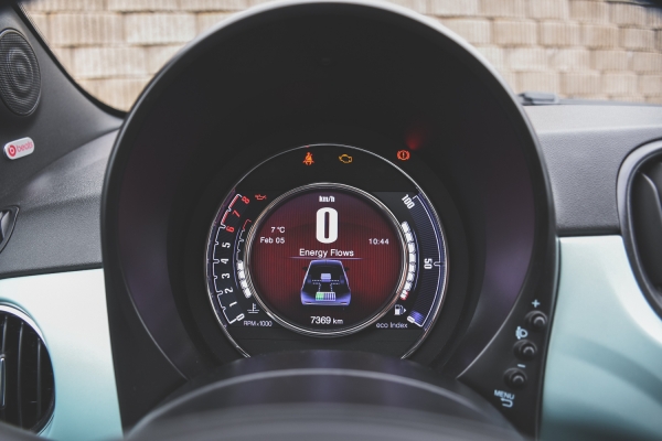 Ahogy tapasztaltam, kevésbé tölt vissza hatékonyan, mint a Suzuki rendszere, aminek elég volt egy lámpához gurulás, hogy félig feltöltsön az apró akksi. A Fiatnak ehhez egy autópályáról legurulás kell, teljesen feltölteni pedig sosem tudtam az akkumulátorszintet. Mivel én dinamikusan autóztam vele, a teszthét átlagfogyasztása 5,2 liter lett, ami egészen lenyűgöző ilyen hidegben. Ráadásul nem csak ezzel, de az utastérben használt Seaqual üléshuzatokkal is tesznek a környezetvédelemért, amik részben a tengerekből és a szárazföldről összegyűjtött műanyag hulladékokból újrahasznosítva készültek.