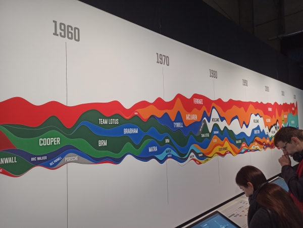 Rögtön egy nagyon hatásos, három versenyautó mögé vetített kisfilmmel indul a kiállítás, a hanghatások megfelelő átéléséhez pedig mindenképp ajánlott a bejáratnál kapott audio guide. Minden állomáson beolvashatjuk egy jeladóval, hogy épp ki és miről beszél az adott állomáson. Nagyon érdekes és nem ritkán szórakoztató sztorikat mesélnek el pilóták, mérnökök, csapatfőnökök, viszont gyakran feltorlódik a tömeg 1-1 nagyobb állomásnál – persze ehhez az is kell, hogy olyan tömeg legyen, mint az esetünkben volt. Szerencsére ahogy haladunk előre, úgy lesznek egyre kevesebben és úgy lesznek egyre nagyobbak a kiállító termek, és a kiállítás végén pedig egy döbbenetesen hatásos pitwall élményben lehet részünk, amit nem is lövök le előre!