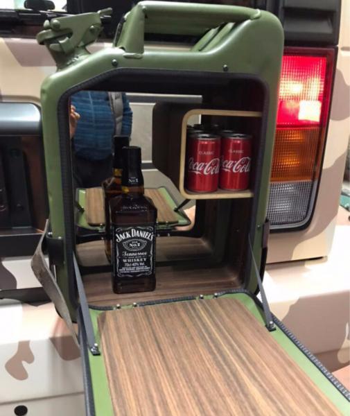A póttank helyére pedig egy minibárt építettek be, a benzines kannába pedig nemes italokat is bekészítettek.