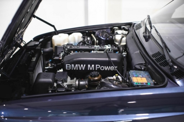 Ugyanakkor nem volt mindig ennyire patika állapotban. A kabrió M3-as élete során megkapta egyszer egy BMW M5 motorját és váltóját. A gyári felújítás során első dolguk volt ezektől megszabadulni és visszaszerelni az eredeti S14 négyhengeres motort és persze a váltót. Fényezése a különleges Macau Blau metálszín, sötétfék szövettetővel és az eredeti, sűrű BBS mintás felniszettel párosítva, aminél semmi sem mutat jobban és korhűbben ezen a típuson.