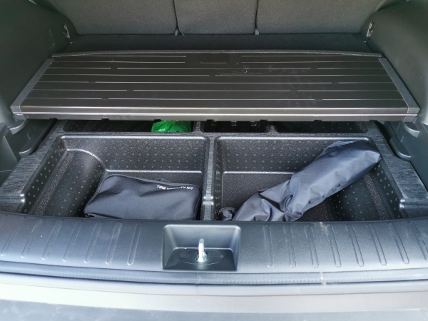 Bár manapság nem számít már extra funkciónak, de a kormányfűtés hűvösebb reggeleken különösen jól esett, csakúgy mint a hátsó üléseken lévőknek a leghajtható kartámaszba beépített pohártartó. Okos megoldás az apró dolgok, úgy mint kulcs, tárca elhelyezésére a sebváltó alatt kialakított „rejtett” zseb, de a hátsó ablakokba beépített napellenző is különösen jó szolgálatot tesz, ha fényvédelemre van szükség, mondjuk a gyerekek részére. A Tucsonban vezeték nélküli telefontöltés mellett elől és hátul is több USB kimenet van, amelyek teljesítménye 5-ről 15W-ra nőtt.