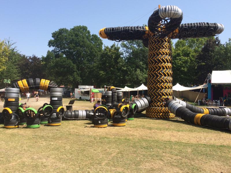 Különleges, gumiabroncsokból készült alkotás fogadja a fesztiválozókat az idei Sziget fesztiválon. A közel 2000 darab használt abroncsból felépített installációval a Világzenei színpadnál találkozhatnak a fesztiválozók. „Amikor beülünk az autónkba, vagy felszállunk egy buszra, nem is gondolunk bele, hogy a gumiabroncs jelenti az út és a jármű közötti egyetlen kapcsolatot; és épp ennek a kapcsolatnak a minőségén múlik, hogy biztonságban megérkezünk-e úti célunkhoz.” – hívta fel a figyelmet Fodor Mónika, a Continental Hungaria Kft. senior marketing és PR koordinátora.