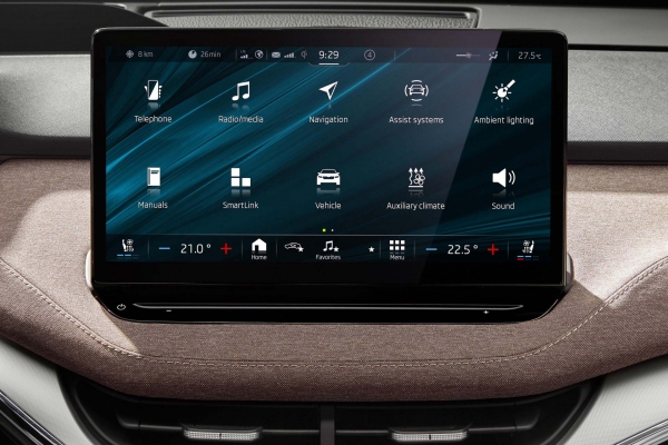 A vezető előtt közvetlenül egy kisebb, 5,3 colos digitális műszerfal van, míg a központi kijelző 10 vagy 13 colos méretű lehet. Ez utóbbi az OCTAVIA esetén megismert csúszkával és gombsorral is rendelkezik. A hatalmas teret számos ötletes megoldás teszi teljessé.