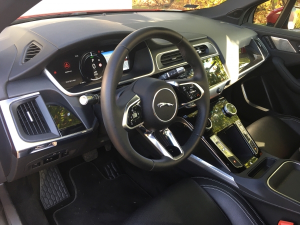 Az alumínium karosszéria nagyon merev, a tömeg elosztása 50:50 százalék, ez ideálisnak mondható, az üresen 23 mázsás tömeg (adaptív lengéscsillapítókkal és légrugókkal, spirálrugókkal 22 mázsát nyom) azonban egyáltalán nem az. Hogy mégis élményautó, arról a nyári mátrai közös zsűritesztünk tanúskodott, amikor egymás után többször sprinteltünk fel és le a Kékesre. Mindannyiszor levakarhatatlan vigyorral szálltunk ki a hatótávjától könnyedén megszabaduló Jaguarból. Hogy ne gyulladjunk meg, extrém terheléskor kinyílnak az aktív beömlői, az akksik folyadékhűtést kaptak, ráadásul a klíma is hűti az életfontosságú alkatrészeket. Bátran lehet versenypályán játszadozni a nehéz monstrummal, csak legyen ehhez elég delej, vagy a közelben konnektor. Ha bajban vagyunk, magunk kapcsolhatunk teknősbéka-üzemmódot, ami kiiktat minden fölösleges fogyasztót és ad még kb. 10 kilométer hatótávot.