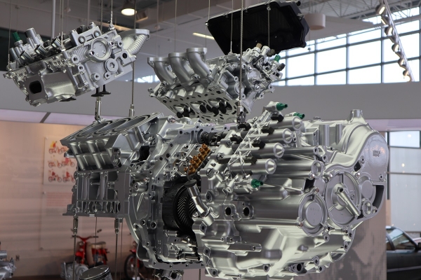 Kétségtelenül az NSX motorjának robbantott "ábrája" ragadta meg leginkább az ember tekintetét, amint belépett a Honda Heritage Centerbe. Igazság szerint nemhogy belülről nem látja túl gyakran földi halandó a szupersportautót, de meztelenül, illetve motorját teljesen szétkapva aztán végképp nem.