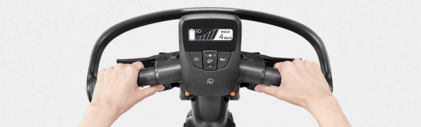 A C+walk sorozat esetében a kormánykerék mindkét oldalán található gázkarok segítségével szabályozható az indulás, a gyorsítás, a lassítás és a megállás. Egyszerűen nyomja meg a kart az induláshoz, gyorsítson, és engedje el a kart, hogy megálljon. Ez az egyszerű művelet intuitív és bárki számára könnyen használható. A kormánykerék mindkét oldalán található fékkarok szükség esetén fokozottabb lassítást biztosítanak. A hátramenet gomb megnyomása, amely független a többi kezelőszervtől, lehetővé teszi a jármű tolatását. Az állapotjelző panel lehetővé teszi az akkumulátor töltöttségi szintjének és sebességének egy pillantással történő ellenőrzését. A jármű operációs rendszere aktiválható, ha az akkumulátor bekapcsolása után egy speciális kulcsot tart az érzékelőterületen. A könnyű (2,5 kg) és eltávolítható lítium-ion akkumulátor körülbelül 2,5 óra alatt teljesen feltölthető a mellékelt AC 100 V-os töltőkészülékkel. Könnyen hazavihető, és úgy töltheti az akkumulátort, mintha egy mobiltelefon lenne.