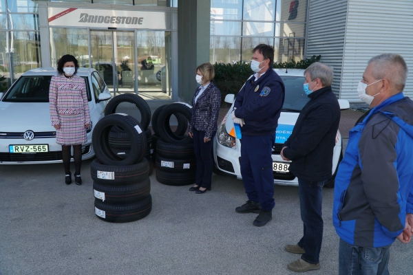 Az abroncsgyár jóvoltából a két intézmény összesen 12 járművére – személygépkocsikra, furgonokra, kisteherautókra és kisbuszokra – kerülnek új gumiabroncsok. Az abroncsokat április 7-én, Szücsné Posztovics Ilona, Tatabánya Polgármestere jelenlétében adta át Topolcsik Melinda, a Bridgestone Tatabánya Termelő Kft. ügyvezető igazgatója a két szervezet munkatársainak. Az átadásnál kiemelt figyelmet fordítottak a higiénés szabályok és a javasolt távolság betartására.