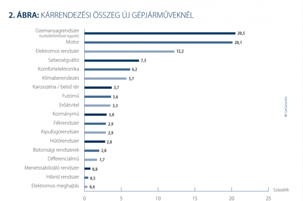 A kárgyakoriság eloszlása is nagyrészt változatlan maradt, mind a sorrend, mind az arányok tekintetében. A használt autók esetében az arányokat tekintve az első helyen továbbra is az üzemanyagrendszer áll 20,3 %-kal (előző év: 19,7 %), ezt követi az elektromos rendszer 18,7 %-kal (előző év: 18,3 %) és a motor 11,1 %-kal (előző év: 10,7 %).