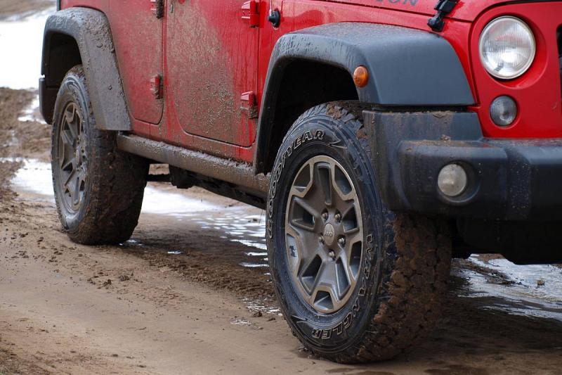 Sárfogó gumik nincsenek, így gyönyörű mintát rajzolhatunk sárral az autó oldalára