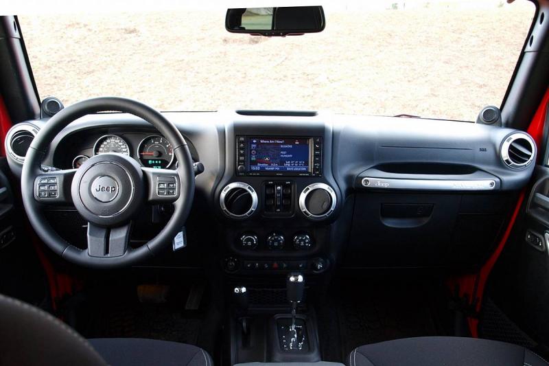 Ennyiben talán lehetne engedni az idők szavának, ha amúgy sem hagyták teljesen érintetlenül a belső teret. A kialakításával az ősöket idéző műszerfalon ugyanis navigációs fejegység terpeszkedik, megtörve ezzel kicsit a varázst. A varázslat pedig éppen annak egyszerűségében rejlik. Csaknem szimmetrikus kialakítású és itt is a függőleges uralkodik, nem törekszik az ember ölébe. A szélvédő pedig ott van az orrunk előtt, nem pedig elérhetetlen távolságban. A műszeregységet négy, krómkarikával ellátott óra alkotja. A két nagyobbik aljába pontmátrix kijelzők költöztettek. Túlhaladott technológia, de valahogy ez is jól áll a Jeepnek. Ahogy nem húzza fel a szemöldökét az ember azon sem, hogy az első ülések sínjei teljesen kilátszanak, takarásnak nyoma sincs. Beöltöztették viszont a fejünk fölött burjánzó alkar-vastagságú bukócsöveket, amelyek az autó merevségéért felelnek.