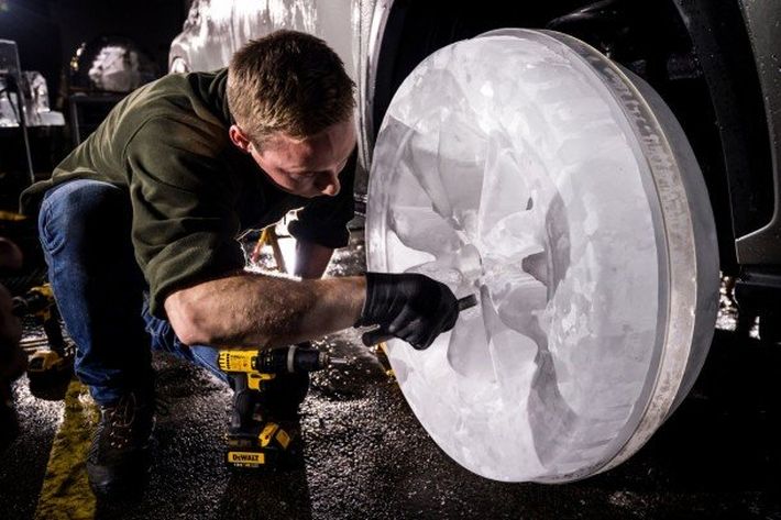 Egy Lexus NX Crossover, ami jégkerekeken gurul. Bizony ám, jégből készült kerekeken. A projekt három hónapnyi kutatással, tervezéssel és teszteléssel kezdődött. A sikerhez nagyban hozzájárultak a Hamilton Ice Sculptors emberei, vagyis profi jégfaragó művészek. Az igazi NX kerekeit és gumiabroncsait lézerrel szkennelték be, hogy aztán el tudják készíteni a pontos másolatát fagyott vízből. Minden egyes keréken egy 4 főből álló csapat dolgozott nagyjából 36 órán keresztül.