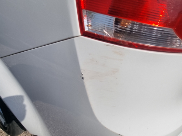 Fénysérült lökhárítók, kavicsos motorház fedél és tetőlemez, rányitásos sérülések, levert ajtóélek és övvonalak. A bal hátsó lámpa külső része repedt volt, ez illene idővel cserélni. Ez van.