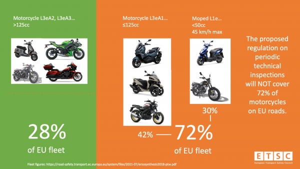 A parlamenti állásfoglalásért felelős Jens Gieseke német EP-képviselő – az Európai Néppárt politikusa – azt javasolja, hogy a kötelező vizsgálat terjedjen ki az 50 és 125 cm³ közötti kategóriára is, ami további 42 százaléknyi járművet vonna be a rendszerbe. Az ETSC szerint ez különösen indokolt, hiszen a kisebb robogók és motorok sok országban a városi közlekedés meghatározó szereplői, így műszaki állapotuk közvetlenül hat a közlekedésbiztonságra.