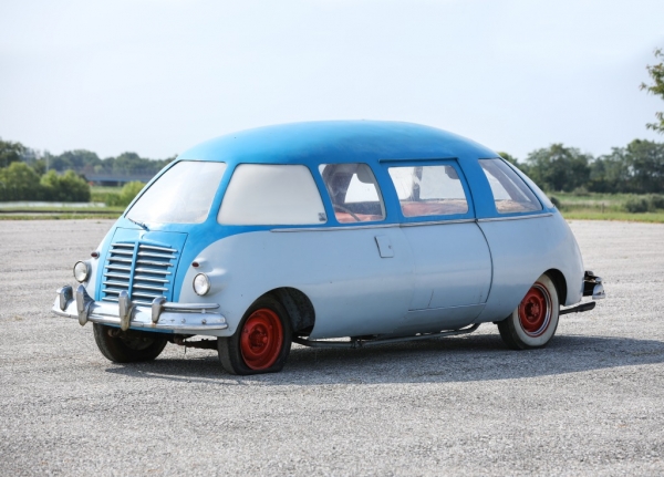 A leharcolt Surlesmobile egy 2019-es árverés előtt. Ekkor vásárolta meg a Lane Motor Museum a járművet