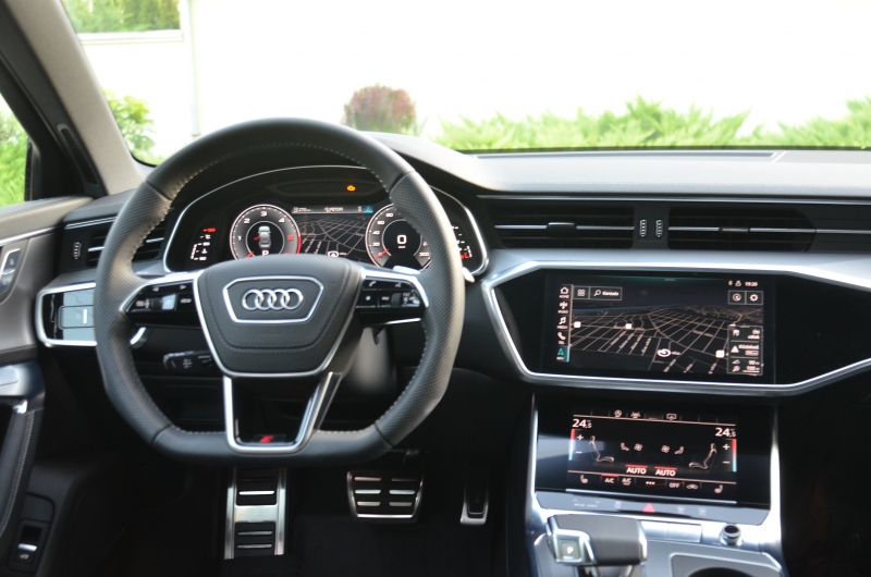 Az új A6-os már elindult az önvezető utazás felé vivő úton, s ebbe szépen illeszkedik a nagyon kulturált működésű, aktív sávtartó automatika. Ha kell, finoman, ha úgy szükséges, rendesen is belenyúl a kormányzásba, miközben időben figyelmeztet is, hogy vegyük vissza az irányítást. A rendszer a hagyományos sávkövetés mellett az úgynevezett bottleneck funkcióra is képes, vagyis a hirtelen összeszűkülő ideiglenes felfestéseket is aktívan követi. Ehhez jön még a torlódási asszisztens, a garázs- és parkolópilóta-rendszer.