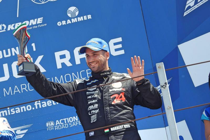 A Tankpool24 csapat Mercedesével versenyző magyar pilóta második lett az időmérő edzésen. Honlapjának beszámolója szerint így az első sorból rajtolhatott a harmadik futamon, és bár hamar visszaesett a harmadik helyre, ezt a leintésig megtartotta. A negyedik, fordított rajtrácsos futamnak a hatodik helyről vágott neki a szombathelyi pilóta, és két helyet javítva negyedikként ért célba. Kiss szombaton felállhatott a dobogóra, de kamionja 15 kilóval könnyebb volt a megengedettnél, ezért kizárták.