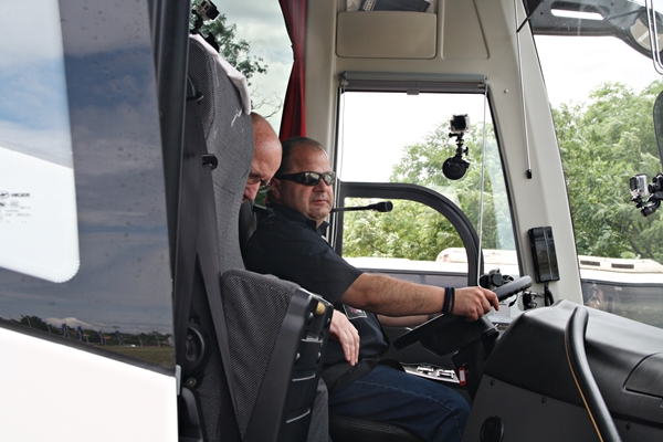 Az eddigi legnagyobb méretű és teljesítményű jármű, amit Sanyi valaha megmozdított sajátkezűleg, a képen látható Scania Touring. 13 ezer köbcentis, 450 lóerős és 12 méter hosszú