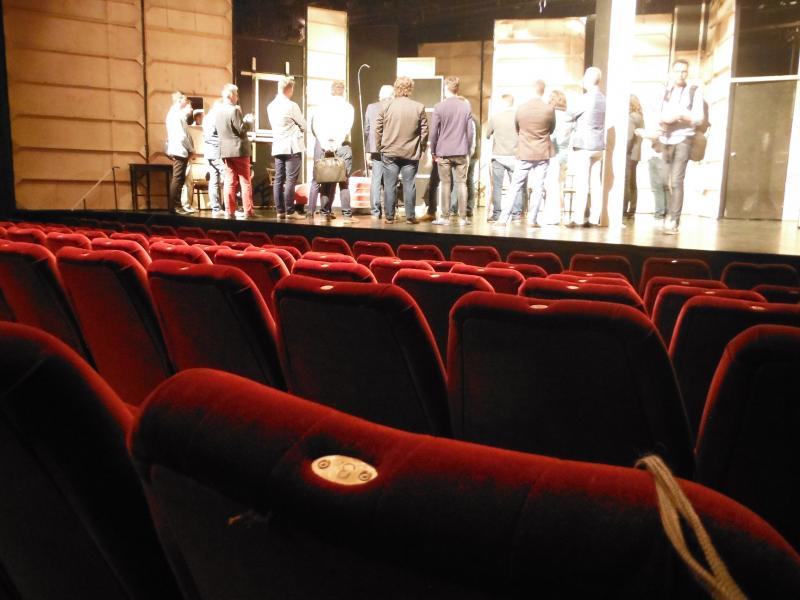Nagy Ervin dodzsemes és karaoke beütésű minidarabja után következett az izgalmas hátországi séta, melyen sok minden világossá vált. Már amikor sikerült megtalálni az alagsori villanykapcsolókat. Ha nem is sötétben, de szűkösen él és dolgozik a műszakiakkal együtt több mint százhúsz fős kollektíva, melyből ketten is bevállalták, hogy bevezetnek a nézők által még képekről sem ismert hátországban, ahol a jelmezek, sminkek készülnek előadás előtt, majd miután lement a függöny ott is dobják le mindezt a színészek.