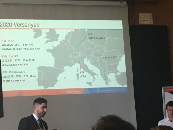 Csapattagokkal, szponzorokkal és szimpatizánsokkal telt meg idén is a BME K épületének 172-es előadóterme. Design Freeze 2020 a hivatalos neve a legrégebbi magyar Formula Student csapat első idei nyilvános rendezvényének. A meghívottak közül idén sem hiányoztak a versenytársak, a győri Arrabona Racing Team komoly létszámmal képviselte magát, de megjelentek a jövőbeli vetélytársak is az Óbudai Egyetem személyében, mert ők is Formula autó építésébe kezdtek, ahogy a 15 fős csapat OUR team kapitánya, Felvári Bálint az Autószektornak elmondta 600 köbcentis, benzines négyhengeres Suzuki GSX-R600-ast építenek autójukba.