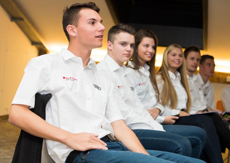 Vivien (balról a harmadik) a múlt hét pénteken már elutazott az Audi németországi főhadiszállására, ahol a sorozatban részt vevő pilótatársaival együtt készítik fel őket megmérettetésre