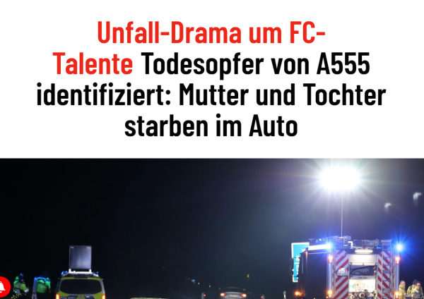 A Mercedesben egy 20 éves sofőr és egy 21 éves utas, az Audiban pedig egy 20 éves sofőr és egy 20 éves utas ült. Az FC Köln korábban azt mondta az EXPRESS.de-nek: „Tájékoztattak minket a balesetről, és arról, hogy az 1. FC Köln ifjúsági csapatának játékosai is érintettek.”