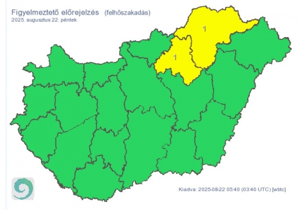 Pénteken elsősorban a Dunától keletre alakulhatnak ki helyenként zivatarok. Ezeket viharos (~60-75 km/h) széllökések, intenzív csapadék (15-25 mm), északkeleten felhőszakadás (>30 mm), minimális eséllyel apróbb szemű jég (< 1-2 cm) kísérheti. - Estére mindenütt megszűnik a zivatartevékenység az országban - írja a HungaroMet.