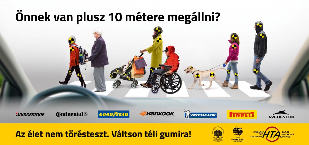 Morenth Péter, a HTA ügyvezető elnöke elmondta, a közlekedésbiztonsági kampány különböző televízió csatornákon, rádióadókon, köztéri óriásplakáton és online felületeken jelent meg. Sok autós a mai napig nincs tisztában azzal, miért is fontos az évszaknak megfelelő abroncsokkal felszerelnie járművét. A nyári gumik, átlagosan 7 Celsius fok alatt felkeményednek, tapadási képességeik jelentősen romlanak. Egy személyautó esetében mindössze négy tenyérnyi felület jelenti a kapcsolatot az úttal. Ha ez a kapcsolat nem megfelelő, annak végzetes következményei lehetnek. Sokan arra hivatkozva nem vásárolnak téli abroncsokat, hogy azt anyagilag nem engedhetik meg maguknak. Elfelejtik azonban, hogy amíg a téli abroncsok vannak fenn az autón, addig a nyári kerekek pihennek. Megfelelő tárolás mellett és egy szolidabb éves futásteljesítményt – 8-10 ezer kilométer évente – figyelembe véve akár 5-6 évre megoldható egy személyautó gumiabroncs kérdése. Sajnos a magyar autótulajdonosok hajlamosak megfeledkezni az abroncsokról, hiszen még a keréknyomást sem nagyon ellenőrzik, pedig ez alapvető biztonsági minimum, és legalább kéthetente meg kellene tenni.