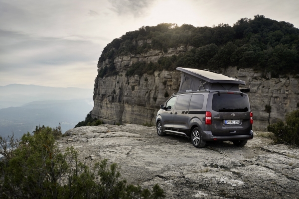 Kempingbuszt faragott a lakóautók egyik legnagyobb tapasztalatú cége, a Hymer a Toyota Proace Versóból. A Crosscamp alapja a Proace Verso közepes méretű verziója volt: ez 4,96 méteres hosszával alig nagyobb egy középkategóriás kombinál, ugyanakkor 328 centiméteres tengelytávja tágassá teszi, magassága pedig az átépítés során rászerelt, felnyitható alvótetővel együtt sem haladja meg a 199 centimétert, így gond nélkül be lehet vele állni mélygarázsba.