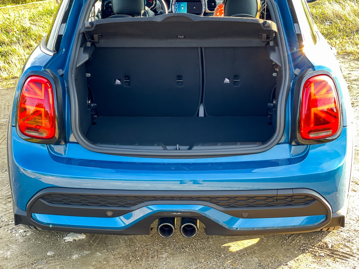 A Cooper S felszereltséghez tartozik az egyedi lökhárító, illetve az idei évtől a Union Jack, azaz a Brit zászlót imitáló hátsó lámpatestek már szériában kaphatóak. Persze a motívum megjelenik a C oszlopon, az utastérben is a kormányon, az ülések fejtámláján és az apró pici gombon is a bőr kárpitozáson. A sok ilyen apróság teszi különlegessé a hangulatot a rengeteg íven, karikán kívül, ami az autón megtalálható.