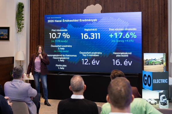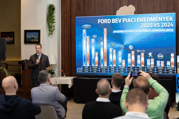 Elsőként a Ford Magyarország tartotta meg 2026-os évindító sajtótájékoztatóját, a havas január közepén Budapesten osztotta meg a menedzsment, hogy kimagasló üzleti eredménnyel, az előzetes várakozásait zárták a 2025-ös évet. Magyarországon 153 ezer új autót regisztráltak 2025-ben, amiből a Ford 16 ezer 311 értékesítéssel, azaz 10.7%-os részesedéssel a második legkelendőbb autómárkának bizonyult a teljes piacot és összes szegmenst egyben számolva. A márka eredményei a megelőző, 2024-es év bronzérmes pozíciójához képest jelentős javulást mutattak, 17.6% éves volumen növekedésük túlszárnyalta az iparág 4.6%-os bővülését.