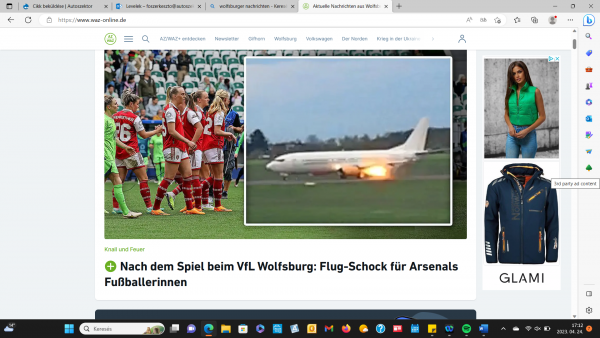 A Wolfsburger Nachrichten cikke. Képernyőfotó.