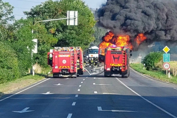 Kigyulladt egy tartályos kamion vontatmánya a 62-es főút 42-es kilométerénél, Székesfehérvár térségében. A tűzesethez nagy erőkkel vonultak ki a székesfehérvári hivatásos tűzoltók, akik a katasztrófavédelmi műveleti szolgálat irányítása mellett megkezdték a lángok oltását. A beavatkozás idejére teljes szélességében lezárták az érintett útszakaszt.