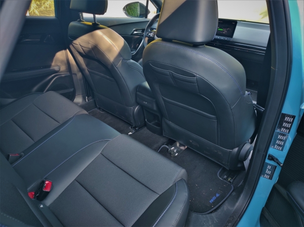 Az MG4-es belseje sem marad el semmiben a nagy múltú nyugati dinasztiák képviselőitől. Az ülések közti lábtér tágas, kényelmi problémák itt egyáltalán nincsenek. Az ötszemélyes ötszemélyest is jelent. A belsőt takaró műbőrök, kárpitok és burkolatok sem vacakok, az autó kategóriájával teljesen összhangban vannak. Picit talán sok a nem karcálló műanyag felület. A mély, 363 literes csomagtartó háztartási kockagépek utaztatásá ra is alkalmas. Pótkerék nincs, de van autóakksiról működtethető kompresszor és miegymás. Mindez a csomagtér alatti tágas és lapos rekeszekben kap helyet, a két szélén pedig még vannak szabadfelhasználású hosszúkás rekeszek. A hátsó ülések lehajtva egy szintre kerülnek a csomagtartó padlójával, így a csomagtér jócskán növelhető.