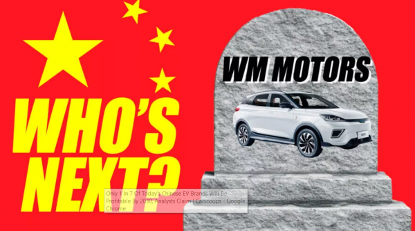 A domináns kínai cégek olyan árréssel dolgoznak, amelyek lehetővé teszik számukra, hogy újra és újra lenyomják az árakat, kifacsarva a rivális kisebb cégeket, amelyek – annak ellenére, hogy a szükebb marzzsal operálnak - tovább kénytelenek csökkenteni áraikat, hogy a piacon maradhassanak. S közben az árháború szemlátomást folytatódik, mivel a nagyobb cégek – a BYD mellett például a Tesla is – domináns pozícióik megerősítésére koncentrálnak. A belsőpiaci harc következtében néhány kínai márka már padlóra került, köztük az WM Motort is, amely tavaly októberbe jelentett csődöt, eladósodva és veszteséget termelve.