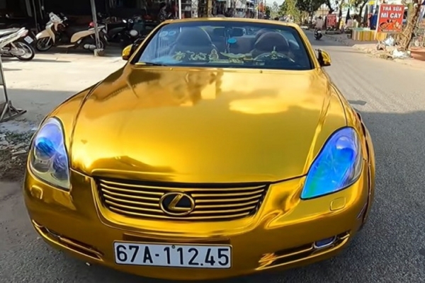 Ha Ön most logikai bukfencet vél felfedezni Tran Duc Loi gondolatmenetében, nincs egyedül. Az viszont biztos, hogy hősünk sajátos meggyőződése nélkül nem született volna meg a világ talán leglátványosabb, legkülönlegesebb Lexus kabriója. A babonás vállalkozó ugyanis nem érte be annyival, hogy elképesztő mennyiségű – saját bevallása szerint mintegy 5 kilogrammnyi – arany ékszert visel, de járműveit is arannyal futtatta be.