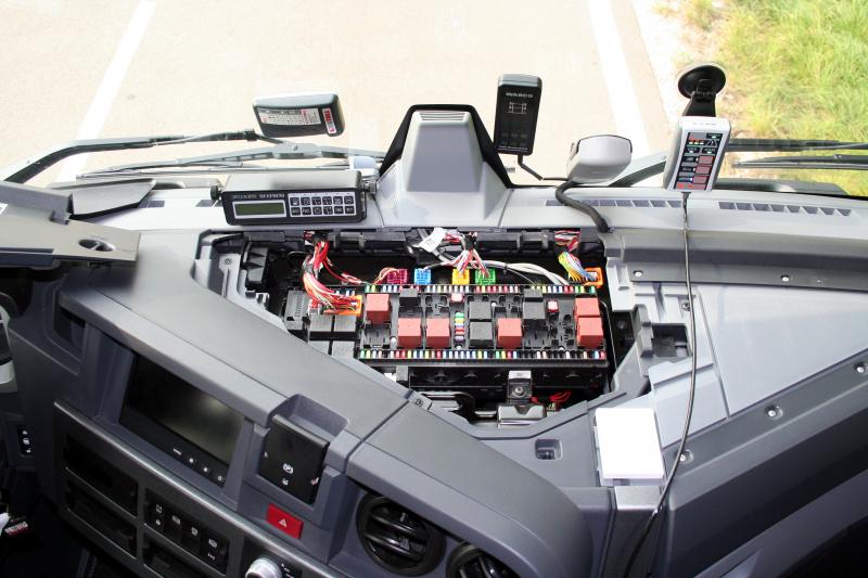 Maga a fülke franciásan egyedi és persze kényelmes. A műszerfal könnyen és gyorsan áttekinthető, az üléspozíció és a kormány számos módon állítható. A fedélzeti rendszerekről a fő műszeregység közepén található monitorról olvashatóak le az információk, a menürendszer a kormányról vezérelhető. A tempomat üzemmód-választója azonban a középkonzolon található, egy tekerőgomb képében, a sebességadatok bevitele és a rendszer aktiválása a kormánykerék megfelelő gombjaival történik. Ennek kezelését, mint minden más mai modern tehergépjárművön, külön meg kell tanulni.