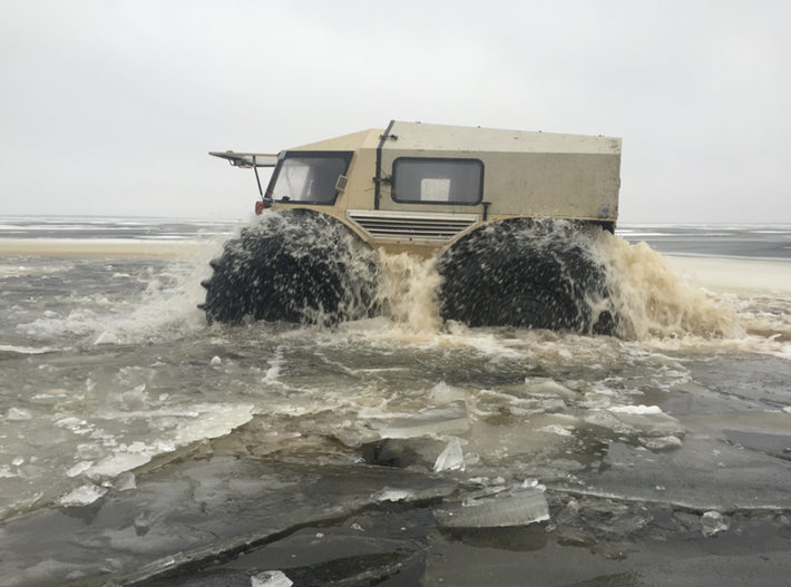A Sherp ATV csapata Aleksei Garagashian technológus vezetésével 2012-ben állt össze, hogy kifejlesszék egy modellt páratlan földi adottságokkal.Tavaly fejezték be a munkát, s az idei évtől mutatják be a nagyközönségnek a legkülönbözőbb expókon, mint például a hamarosan kezdődő orosz Vadász és Halász Show-n.A Sherp ATV ugyanis nem csak egy terepjáró, hanem egy „minden-járó” jármű, amit arra terveztek, hogy olyan vidéken is keresztülmenjen, ahol még sosem járt ember, legyen szó bozótosról, mocsárról, köves vidékről vagy éppen csapdákkal teleszórt erdős területről.