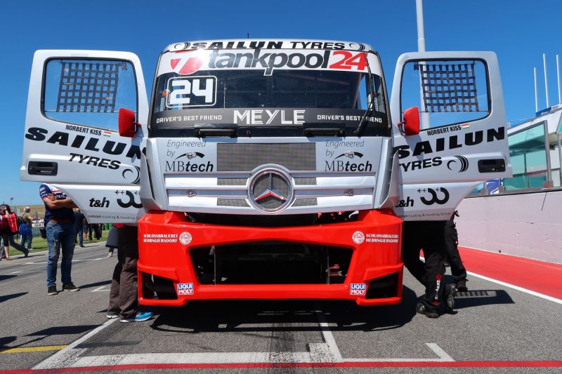 "Ez az a kamion, amellyel 2015-ben versenyeztek, valamint a 2016-os idény első hétvégéjén még én is ezzel indultam, utána készültek el az új gépek" - magyarázta Kiss Norbert. "Ez a régi kamion is úgy néz ki kívülről, mint a mostaniak, ezért a későbbiekben kiállításokon és bemutatókon fogjuk majd hasznát venni."