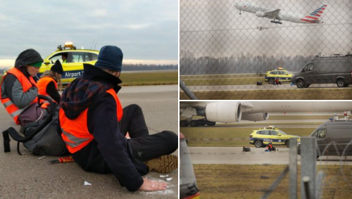 A repülőgépek útjára települt négy aktivista miatt nagyjából háromnegyed óráig csak egy kifutópályán zajlott a közlekedés, de járatokat nem kellett törölni. A szövetségi rendőrség "nagyon gyorsan eltávolította" a behatolókat - mondta a reptér szóvivője a Bayerischer Rundfunk tartományi közszolgálati médiatársaságnak.