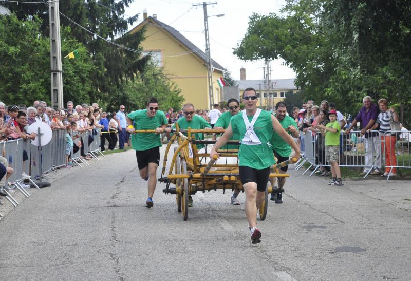 1500 méter hosszú pályán kell tolni a kocsit, az győz, aki a legjobb időt tolja.
