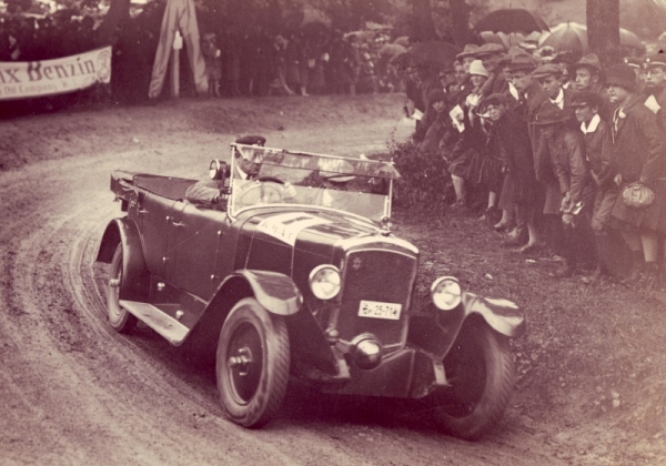 Szmick Viktor 1928-ban a svábhegyi versenyen Weiss Manfréd túrakocsival indult. Fotó: Munkácsi Márton