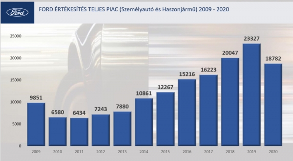 A Ford eladásai Magyarországon 2009 és 2020 között.