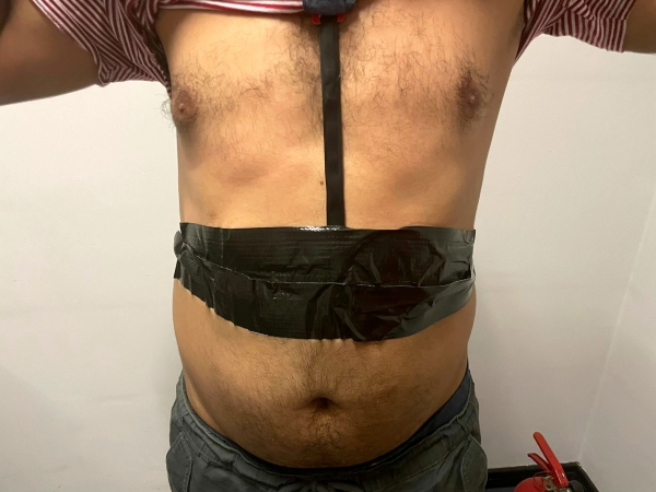 A pocakos figura azért lett híres, mert egy igazán trükkösnek vélt csalás főszereplője. Az illető, egy 34 éves marokkói férfi látható a fotón, aki ezzel az ötletes szerkezettel kívánta letenni a kamionvezetéshez szükséges elméleti vizsgát. Az ing alatt viselt öv kamerát és adó-vevőt rejt, a férfi headset-en keresztül akart így kommunikálni egy barátjával. A külső cinkos a kamerán keresztül láthatta volna, hogyan zajlik a vizsga és impulzusokat küldve adta volna meg a szerinte helyes válaszokat a tesztkérdésekre. Sikeres vizsga estén ezer eurót kapott volna a vizsgázótól. Csakhogy, a tanulni lusta férfi lebukott, csalás vétsége miatt eljárás indult ellene.