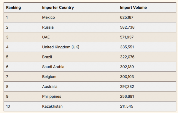 Az Egyesült Arab Emírségek a tavalyi évben már Kína harmadik legnagyobb autóexport‑piacává vált országos bontásban, Mexikó és Oroszország mögött. Őket Nagy-Britannia, Brazília, Szaúd-Arábia, Belgium, Ausztrália, a Fülöp-szigetek és Kazahsztán követ. Ráadásul az utolsó hónapban, tavaly decemberben Dubaj az első helyezett volt a kínai exportlistán. A Dubajba irányuló kivitel közel 570 ezer járművet ért el, ami kiugróan nagy, több mint hetven százalékos növekedés az előző évhez képest.